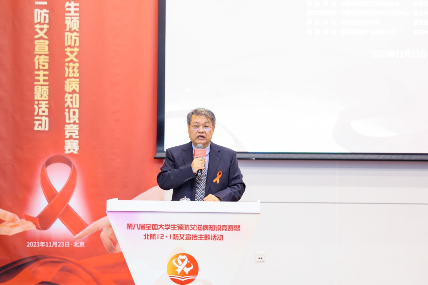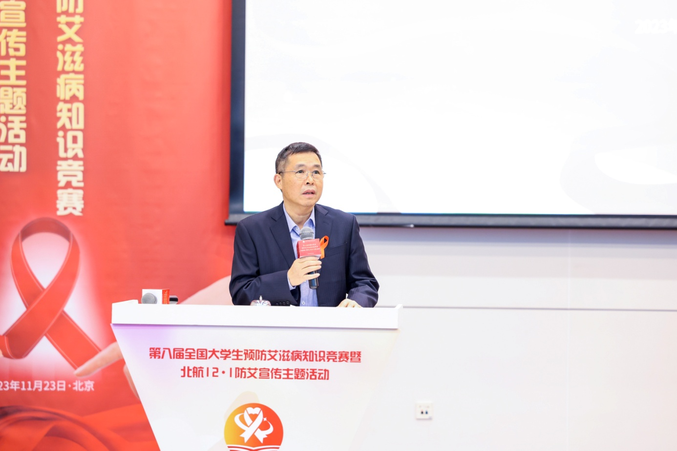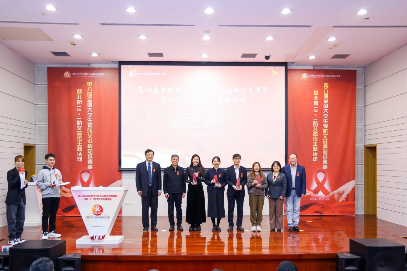 2023年11月23日,在第36个世界艾滋病日来临之际,为持续推进防艾宣传教育进校园工程,提高青年学生对艾滋病的正确认识及自我防护意识和能力,第八届全国大学生预防艾滋病知识竞赛暨北航12·1校园防艾宣传主题活动在北京航空航天大学新主楼第二报告厅举办。