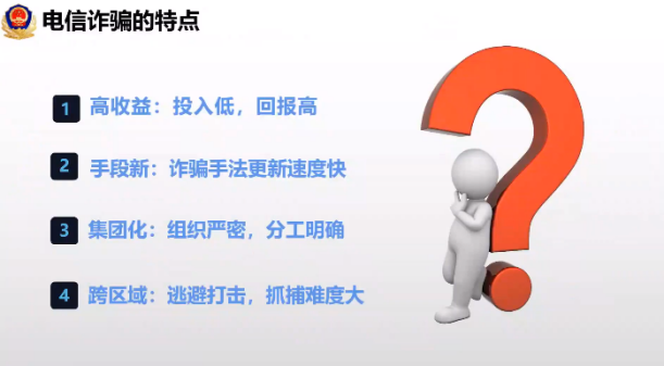 主讲人重点提醒大家要做到“三不一多”,“八个凡是”。三不一多:未知链接不点击,陌生来电不轻信,个人信息不透露,转账汇款多核实。八个凡是:凡是自称公检法要求汇款的、凡是叫你汇款到“安全账户”的、凡是通知中奖、领取补贴要你先交钱的、凡是通知“家属”出事要汇款的、凡是在电话中索要银行信息及短信验证码的、凡是让你开通网银接受检查的、凡是自称领导要求打款的、凡是陌生网站要登记银行卡的、统统不要相信。