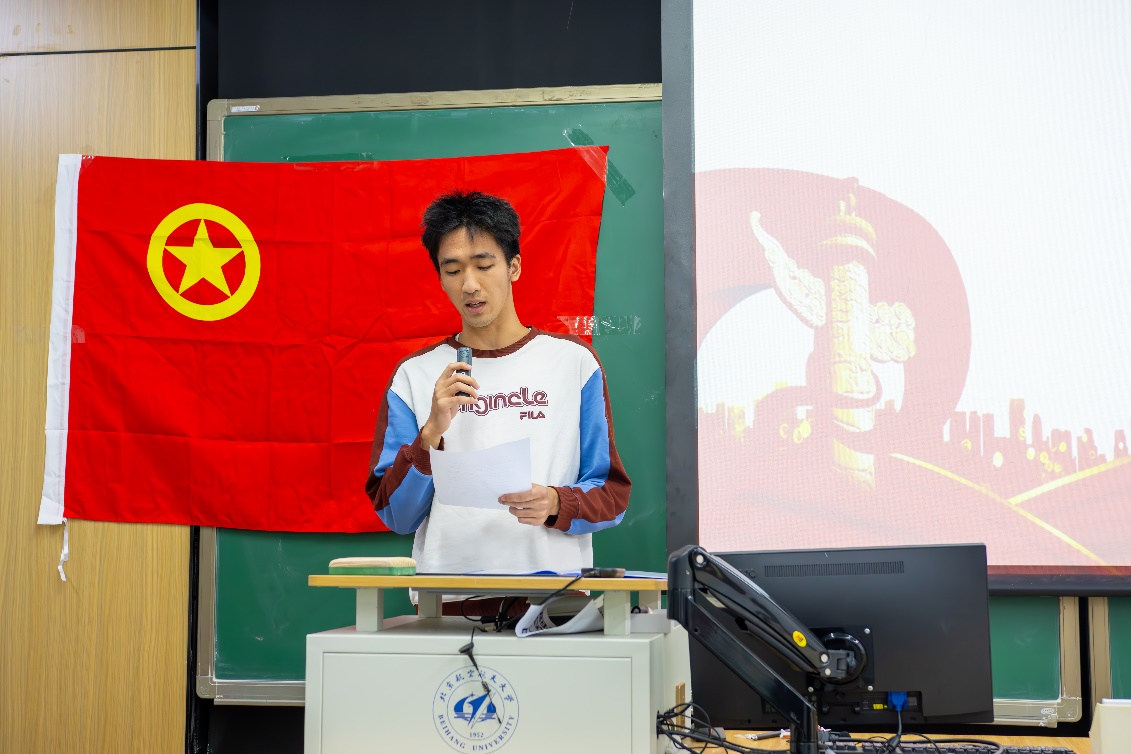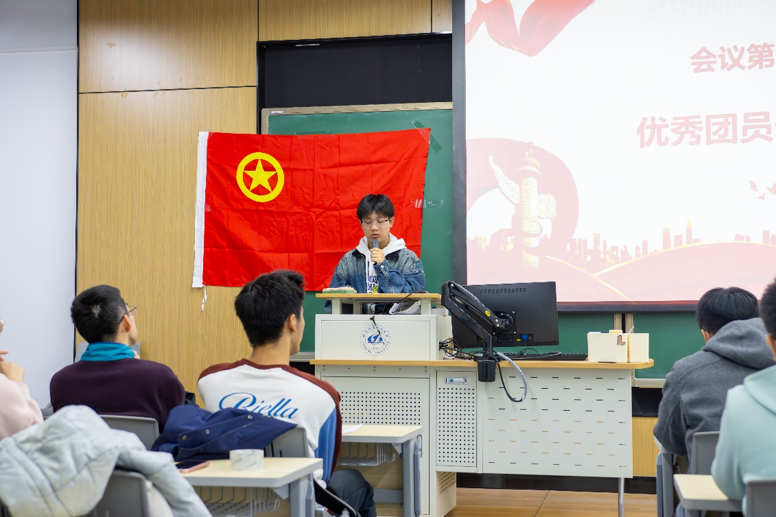 随后,优秀团员代表张烁同学发言,鼓励大家树立正确的价值观,勇于创新,将个人理想与国家发展结合,传承北航“空天报国”精神,为实现中国式现代化、复兴中华民族而努力奋斗。