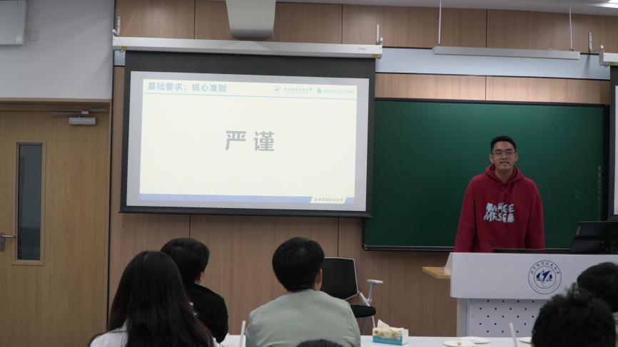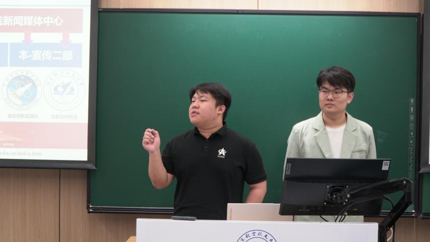 首先,两位辅导员向同学们详细介绍了新闻媒体中心的基本架构及审核管理制度,强调了对外建设以“遇见北航Sasee”为核心,构建一主六辅的公众号与视频号融媒体矩阵的目标,对内要加强思政引领,构建育人生态,强化新闻素养,提升宣传效能。之后,两位辅导员为同学们做事务公文、新闻通讯等稿件写作专题培训。