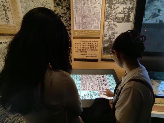 参观过程中,同学们怀着庄重肃穆的心情依次参观各展区,近距离瞻仰文物史料。锈迹斑斑的大刀、褪色的军装、发黄的家书,无声诉说着先烈们的不屈抗争;南京大屠杀遇难者名单墙、强掳中国劳工史实陈列等,让大家深切感受到战争的残酷与和平的珍贵。